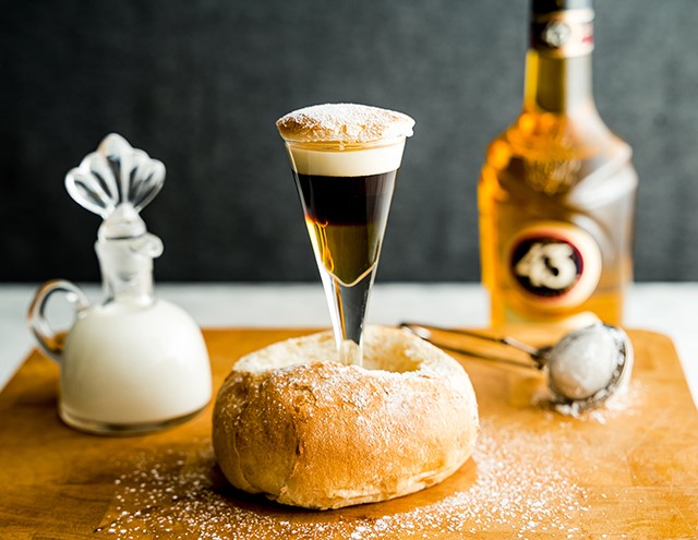 Mät upp Licor 43 och mandellikör i ett shotglas.
