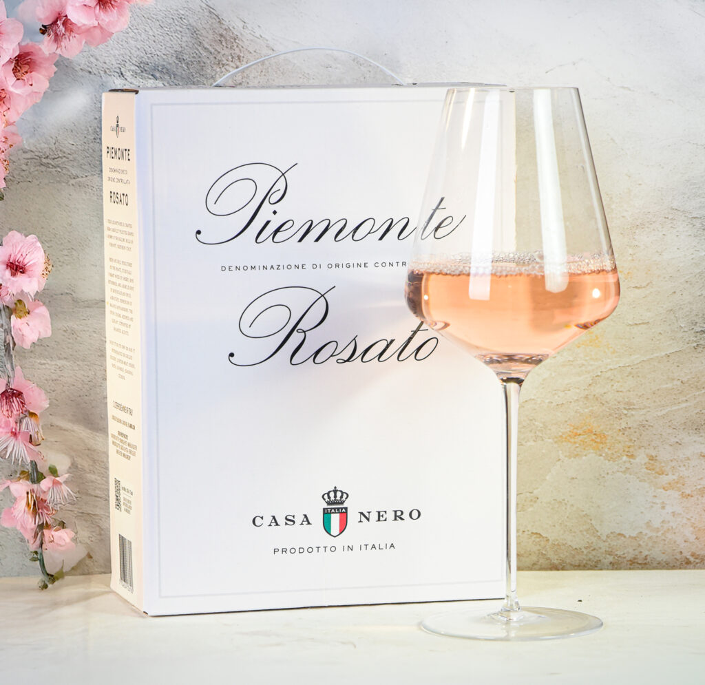 Piemonte är en av Italiens största vinproducerande regioner, med de kända distrikten som Barolo och Barbaresco som affischnamn. Här, bland kullarna, skapas viner som eftertraktas av vinkännare från hela världen och svenskarna har sedan länge fattat tycke för regionen, en popularitet som inte visar några tecken på att avta. Med våren inom rimligt räckhåll så presenteras här det nya tillskottet i Casa Nero-serien, Piemonte Rosato, som levereras i en 3-liter box.