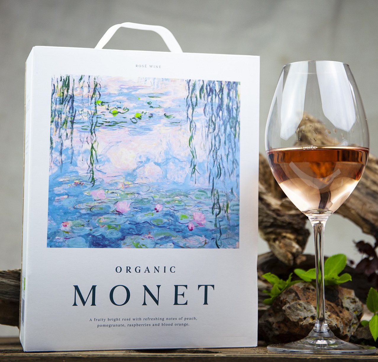 Monets problem med synen, han utvecklade starr med åldern och vid slutet kunde han blott urskilja gula och blå nyanser, gjorde att hans verk från trädgården i Giverny tog sig alltmer abstrakta former. Inte minst gällde det hans älskade näckrosdamm med hängbron över, ett motiv som han målat mer än 250 gånger i olika uttryck och tidsperioder. Les Nymphéas Roses är från hans sista decennium av livet och avbildas även på den ekologiska rosévinsnyhet som vi nu har i våra glas!