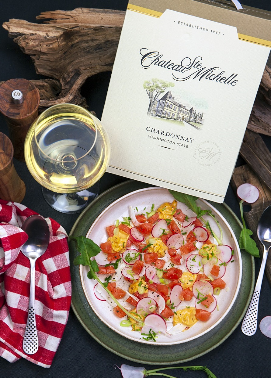 En generös chardonnay med rik frukt och kryddiga toner från faten är precis rätt till den heta rökta laxen med krispiga grönsaker. Det här är en perfekt aptitretare som känns extra passande i vintertid och där vinet hanterar styrkan förnämligt.
