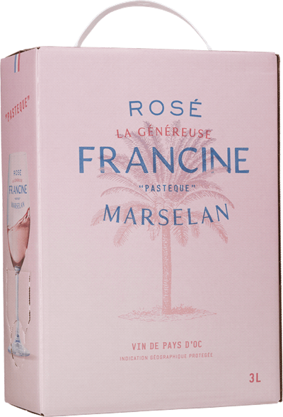 En rosébox som direkt vid upphällning blommar upp och förför med en druvaromatisk doft med röda bär, trädgårdsgröna toner, rabarber, persika och blodröd citrus. Smaken är krispigt torr med frisk, zestig syrlighet, smultron, persika och rabarber i fint fästande och ren stil. Mycket lyckad rosé i låda och som producerats på den intressanta marselan-druvan, en korsning mellan cabernet savignon och grenache. Fynd för priset!